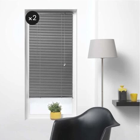 Lot de 2 Store vénitien à lamelles en aluminium 40 x 130 cm Gris anthracite. Pose facile sans perçage. Touche décorative et tendance pour votre fenêtre: Hauteur réglable, Store en aluminium avec plis de 2.5 cm de largeur, Occultation partielle, Protection contre la chaleur et la lumière du soleil. Courbure des lamelles vers l’intérieur pour un lavage avec un chiffon humide. Kit de fixation fourni