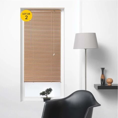 Lot de 2 Store vénitien à lamelles en aluminium 50 x 130 cm Cuivre . Pose facile sans perçage. Touche décorative et tendance pour votre fenêtre: Hauteur réglable, Store en aluminium avec plis de 2.5 cm de largeur, Occultation partielle, Protection contre la chaleur et la lumière du soleil. Courbure des lamelles vers l’intérieur pour un lavage avec un chiffon humide. Kit de fixation fourni