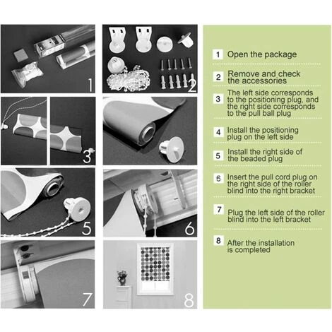 Convient pour un tube de 28 mm de diamètre: Le kit de montage est pour les stores à rouleau standard avec un tube de 25mm de diamètre. (Veuillez vérifier votre cercle de store à rouleau à l’intérieur avant de commander).