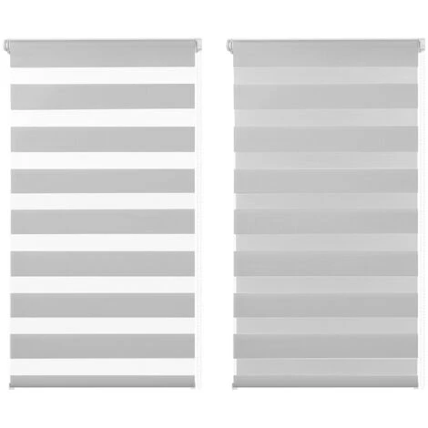 IDMARKET Lot De 2 Stores Enrouleurs Zébrés Jour Nuit L.55 X H. Max 170 Cm Gris Clair