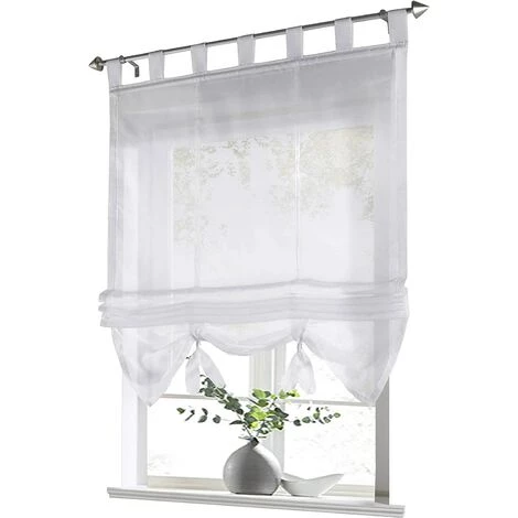 LangRay Store Romain Avec Boucles Rideaux Cuisine Stores Romains Boucle Transparente Rideaux Aveugles Moderne Voile Blanc LxH 100x155cm 1 Pièce