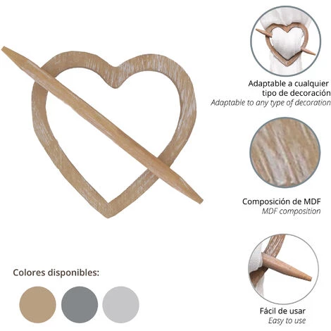 Alzapan élégant pour des rideaux.Il s’adapte parfaitement à tout type de décoration.Facile à utiliser.Joli design.Composition: MDF.Dimensions: 13,5×1,5x16cmGris