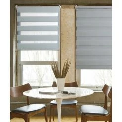 Tissu : Bandes alternant tissu voilage et tissu tamisant.