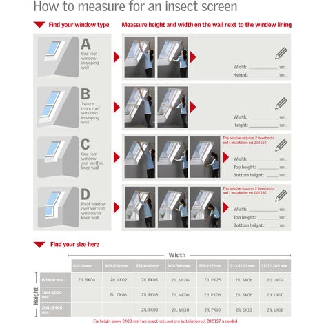 Veuillez noter : dans le cas d’un mur nain, d’une étagère sur un mur nain, de deux fenêtres ou plus sur un mur en pente, 2 moustiquaires VELUX et 1 kit d’installation de ZOZ 157SWL sont nécessaires.