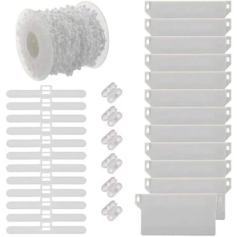 Les connecteurs de chaîne en plastique peuvent être utilisés pour remplacer les accessoires de stores sans remplacer les stores verticaux entiers. Les goujons terminaux verticaux conviennent à une utilisation avec des stores de 89 mm et sont faciles à installer et à remplacer sans outils supplémentaires. Les lattes de poids inférieures peuvent être utilisées pour remplacer les connecteurs existants ou créer des chaînes à boucle continue Un ensemble de chaînes inférieures pour stores verticaux peut être appliqué à vos stores verticaux dans votre salon, chambre, salle de bain, etc. Les accessoires de stores verticaux sont principalement fabriqués en plastique solide, résistance à l’usure et durable pour une longue durée de vie
