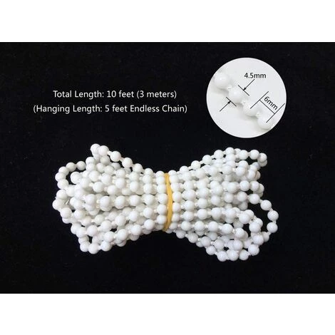 Fermeture éclair : chaîne de store enrouleur de haute qualité : 4,5 mm x 6 mm ; longueur totale d’environ 3 mètres (longueur de suspension 1,5 mètre)