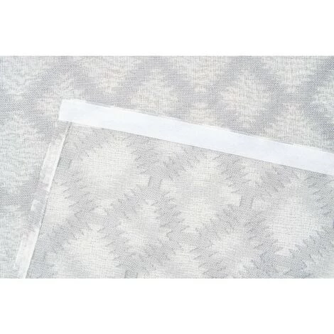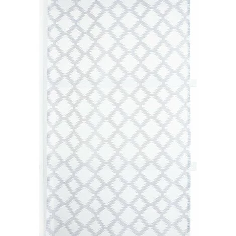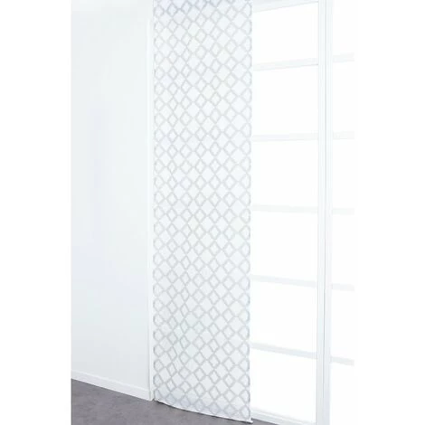 Panneau japonais 60 x 300 cm à scratch grande hauteur brodé motif losanges blanc gris. Un panneau au style ethnique marqué pour une déco salon extra tendance.