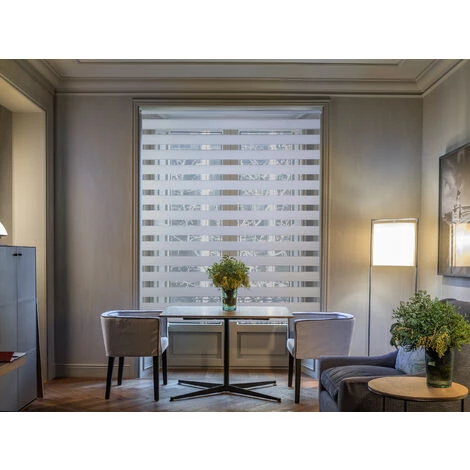 Le store enrouleur nuit et jour, est un estor composé d’un tissu double qui permet d’avoir deux positions de lumière. Grâce à ce mécanisme, nous pourrons choisir par un jeu progressif de transparence ou d’opacité. La lumière d’entrée se règle très facilement : avec la position du store fermé, nous aurons un maximum d’intimité et s’il est placé en position ouverte, il fournira une lumière translucide agréable dans la pièce. Cet élégant double rideau technique est idéal pour tout type de pièces, que ce soit une salle de bain, une chambre, un salon, une salle de réunion ou un bureau. Grâce à son adaptabilité à l’entrée de lumière, il réussira à donner une touche distinctive à chaque pièce où il est installé, étant à la fois un produit pratique et attrayant.