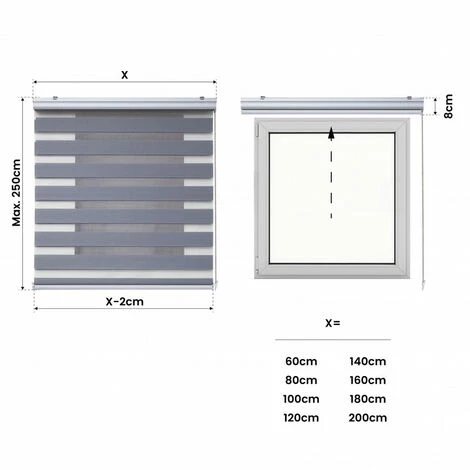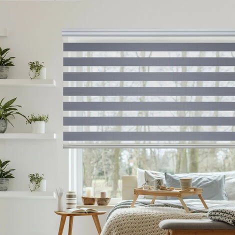 Estor enrollable Noche y Día, decorativo y muy funcional, ideal para cualquier estancia: salones, comedores, dormitorios, despachos… Alto de 250cm ¡ideal para ventanas y puertas! Disponible hasta 200cm de ancho. | Persiana enrollable de doble tejido con acabados Premium: Mecanismo con cajetín superior de aluminio, cadeneta metálica y contrapeso visto de aluminio. | Tejido con doble caída y doble posición para jugar con la luminosidad y privacidad de la estancia. Cuando el estor esté cerrado, tendrás alta privacidad. Cuando esté abierto, la privacidad será moderada. Composición: 100% Poliéster. | El estor incluye soportes metálicos, accesorios para instalación a techo o pared y sistema de seguridad infantil. | Fácil limpieza con un paño ligeramente húmedo.