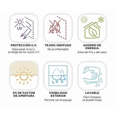 ESTOR ENROLLABLE DE TEJIDO SCREEN: Con grado de apertura del 5%. Disponible en dos alturas: 180cm (para ventanas) y 250cm (para puertas) y ¡hasta 200cm de ancho! | TEJIDO TÉCNICO, MODERNO Y RESISTENTE: Composición: 65% PVC y 35% Poliéster. Aísla del frío y del calor, no propaga el fuego y además repele el polvo y bacterias, es ideal para personas con alergias. | TAMIZA LA LUZ Y APORTA PRIVACIDAD: El Estor Screen tamiza la luz entrante aportando privacidad y al mismo tiempo permite ver el exterior. Podrás ver sin ser visto. | AISLANTE TÉRMICO Y SEGURO: Aísla del frío y del calor, contribuyendo así al ahorro energético, y, además, aporta seguridad en el hogar, ya que el tejido Screen no propaga el fuego. | FÁCIL DE INSTALAR: En la pared o en el techo. FÁCIL DE MANTENER: limpiar con un paño húmedo.