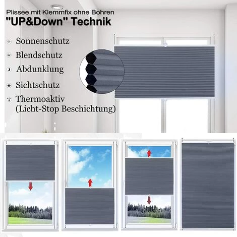 WOLTU Store Plissé Nid D’abeille.sans Perçage Avec Porte-Pince.Store Plissé Antisolaire.95x130cm.Blanc+Bleu
