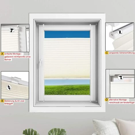 Simple et Durable: ❤Cet store plissé est fait de polyester de haute qualité((profil: aluminium).D’un style simple et moderne.De plus.le nettoyage est facile avec un chiffon sec.