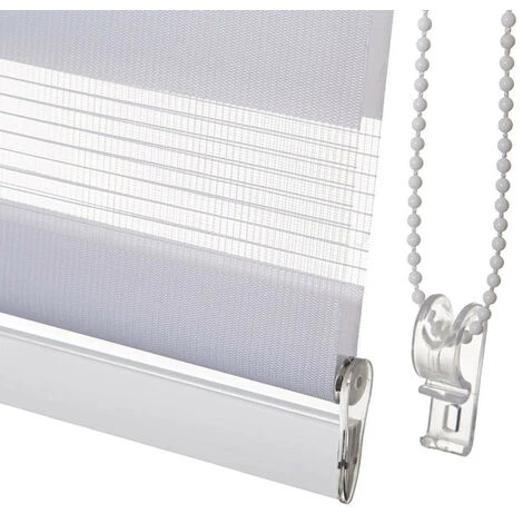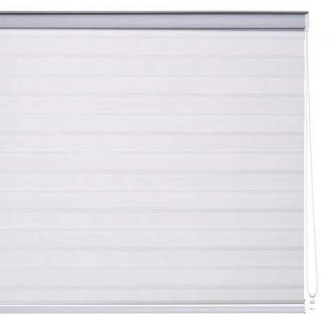 - Le store enrouleur jour et nuit est en polyester blanc et alterne deux bandes différentes, l’une blanche opaque et l’autre blanche translucide, qui permettent de réguler la lumière lors de la montée et de la descente du store. Un store pratique, lisse, élégant, rappelant le style nordique, avec des lignes droites simples et modernes. Un store moderne avec 2 positions et un assemblage simple qui comprend la quincaillerie nécessaire pour une installation au mur ou au plafond.