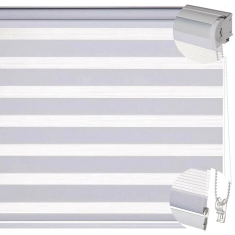 - Le store enrouleur jour et nuit est en polyester blanc et alterne deux bandes différentes, l’une blanche opaque et l’autre blanche translucide, qui permettent de réguler la lumière lors de la montée et de la descente du store. Un store pratique, lisse, élégant, rappelant le style nordique, avec des lignes droites simples et modernes. Un store moderne avec 2 positions et un assemblage simple qui comprend la quincaillerie nécessaire pour une installation au mur ou au plafond.